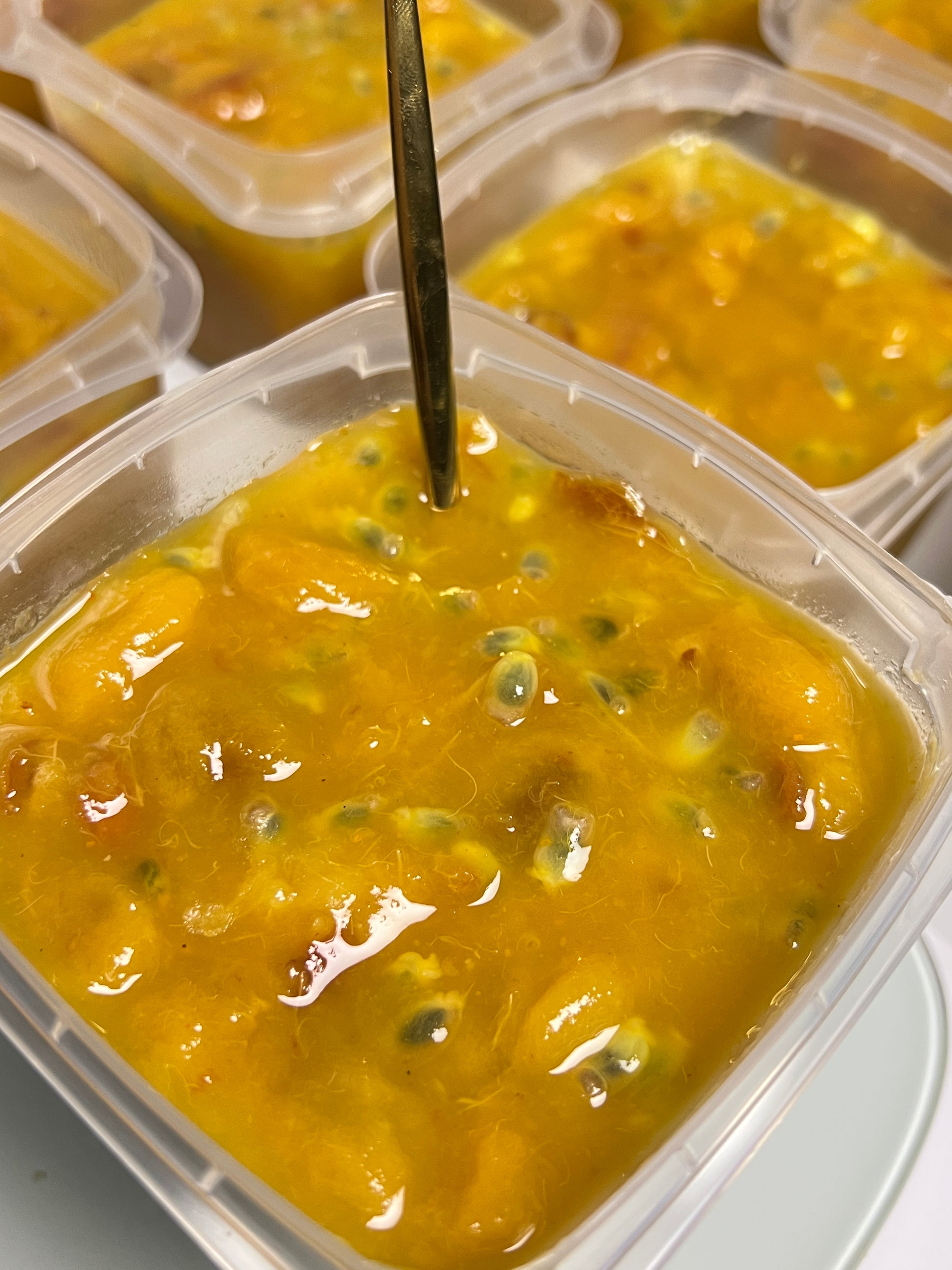 ♦ Ingrédients: Maad (Saba Senegalensis), Fruits de la passion, Sucre, Sel, Piment en poudre (légèrement épicé).